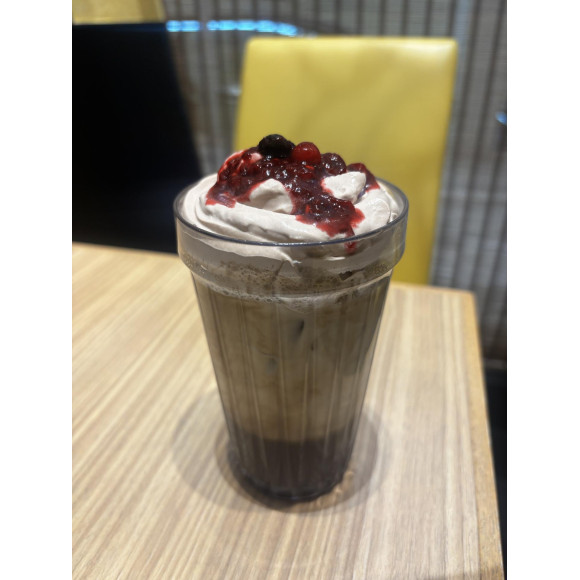 ほうじ茶とチョコレートの相性はとても良く、ほうじ茶の香ばしさ、ショコラシロップやショコラホイップの甘さ、ミックスベリーの酸味が合わさり甘くもすっきりとした味わいに仕上がってます!