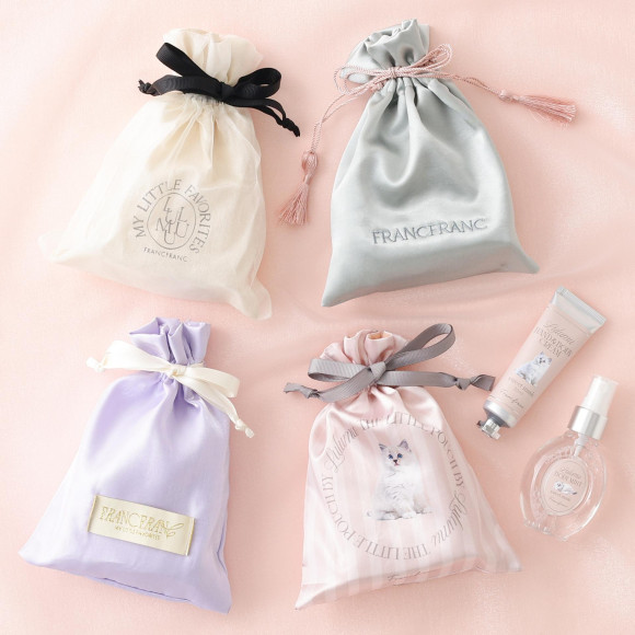 そのままギフトにしても可愛いパッケージの巾着は、持ち運び用のポーチとしても使えるようになっており、中身のデザインともリンクしています。