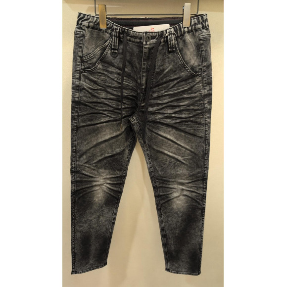 バックボケットのR刺繍と3本ループを特徴としたりエラボの5ポケットデザインパンツ.ウエストベルトの中に平ゴムとスピンドルを入れたイージーパンツ仕様の新型デザインです。