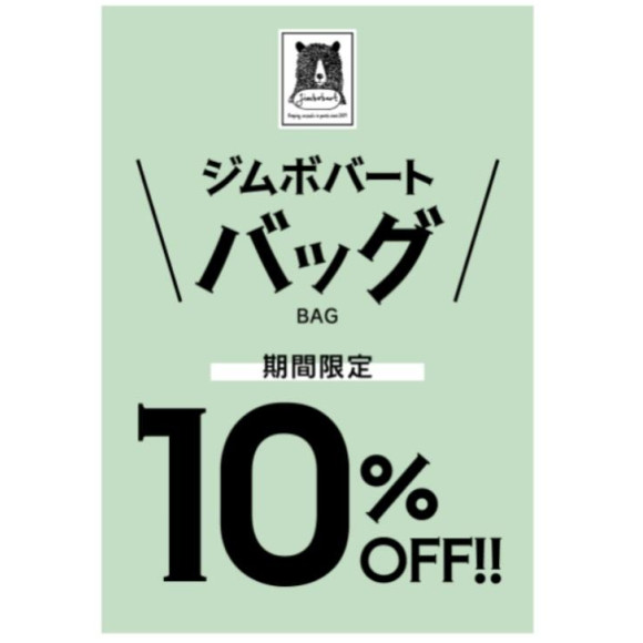 ジムボバート・スカンジナビアンのバッグ10%OFFイベントを実施します