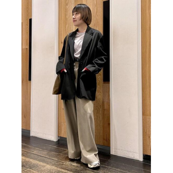 少しオーバーシルエットで肩を落としたデザインなので
