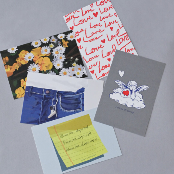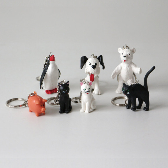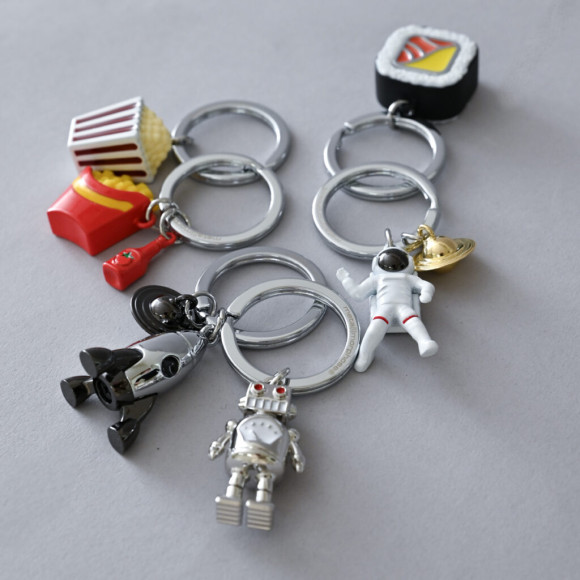 キーホルダーをメインに、ギフトに添えるポストカードやステッカー、