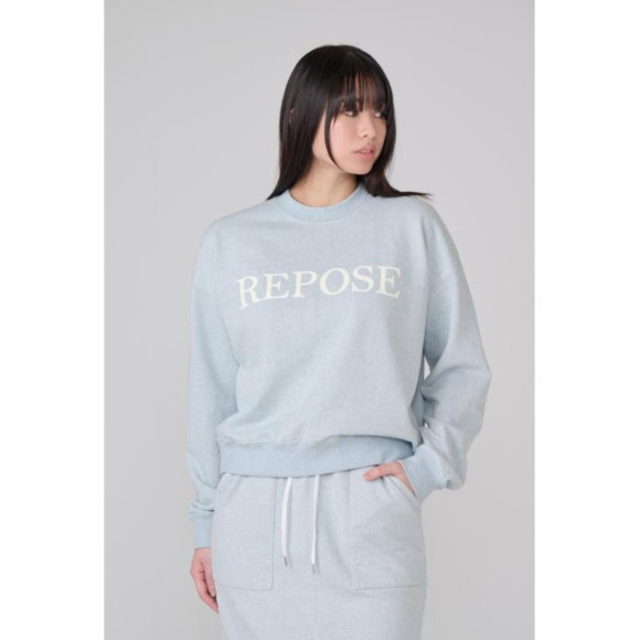 "REPOSE"(休息)のメッセージを胸元に、カジュアルでありながらも上品な印象に仕上げています。