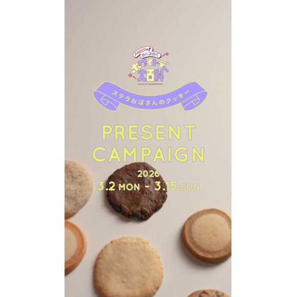 期間中、本館B1F「ステラおばさんのクッキー」で1,000円以上お買い上げのお客様を対象に、お好きなクッキー3枚をプレゼント✨