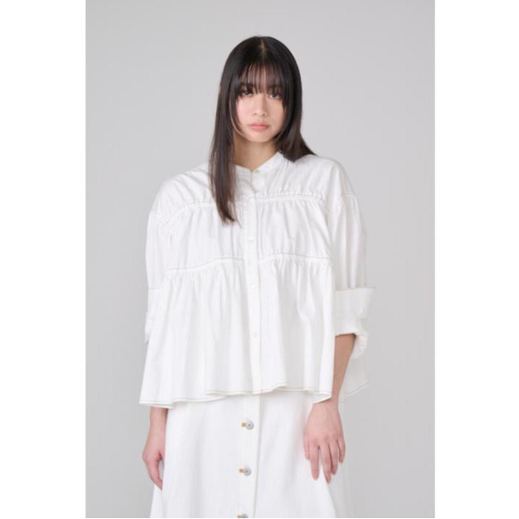 5ozスーピマデニムを使用したシャーリングブラウス。