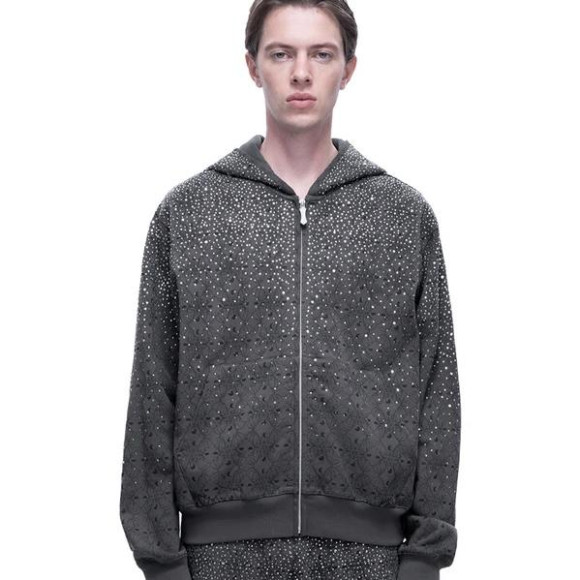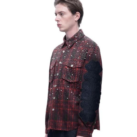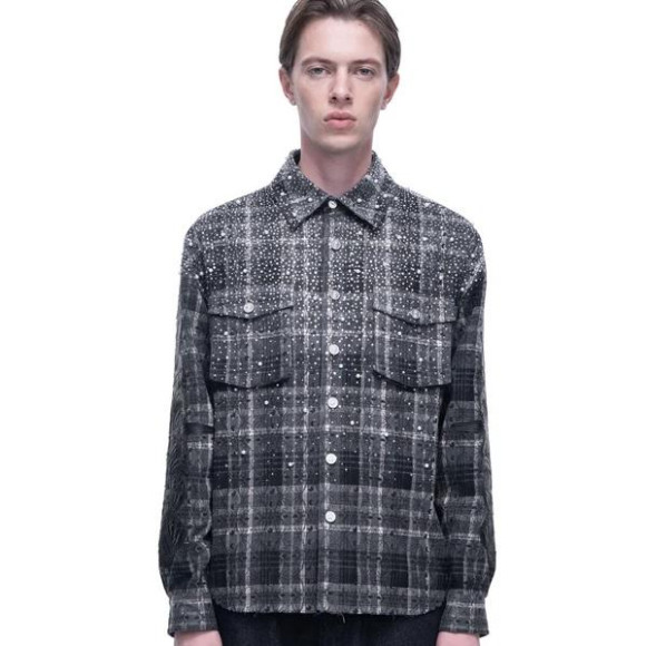 ブランドの代名詞とも言える、ラインストーンがびっしりと敷き詰められたフーディーやチェックシャツ等