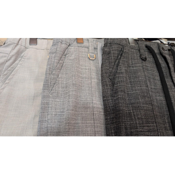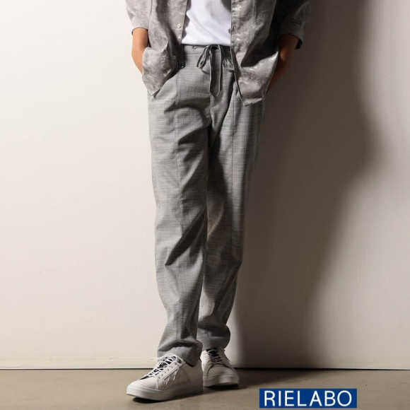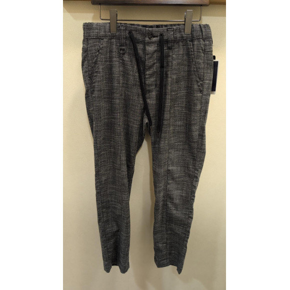 前身の中心、折山部分を摘まんでピンタックにしているデザインイージーパンツです。