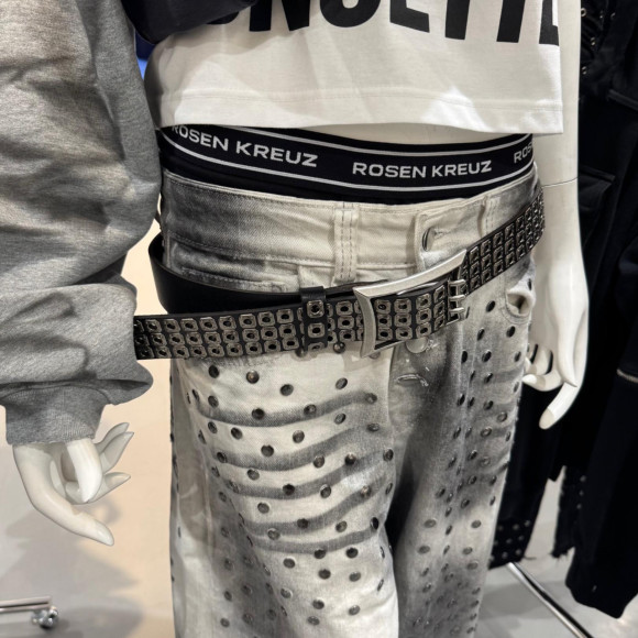 ・Belt【Never mind the XU】Rivet eyelet biker belt (black)