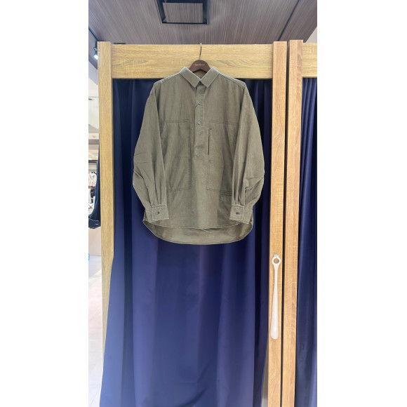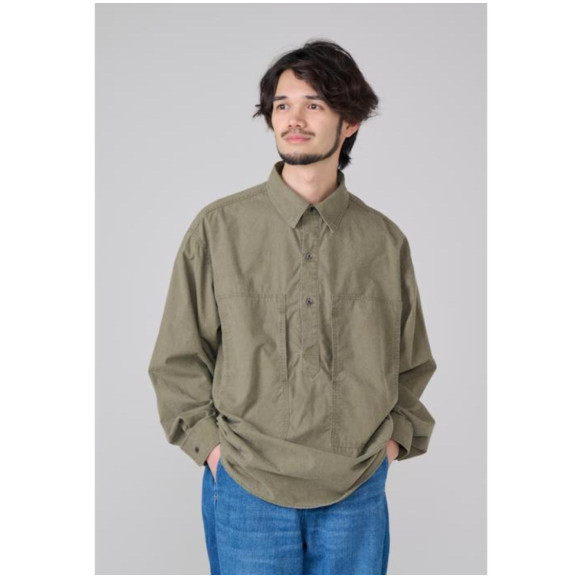 所謂ヴィンテージのUSアーミーのプルオーバーシャツから引用したデザインのシャツに襟を小ぶりに仕上げることでリポらしい大人なシャツの1枚に。