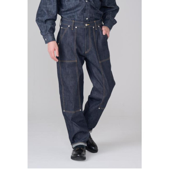 セルヴィッチデニムを使用したダブルニーパンツ。