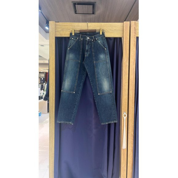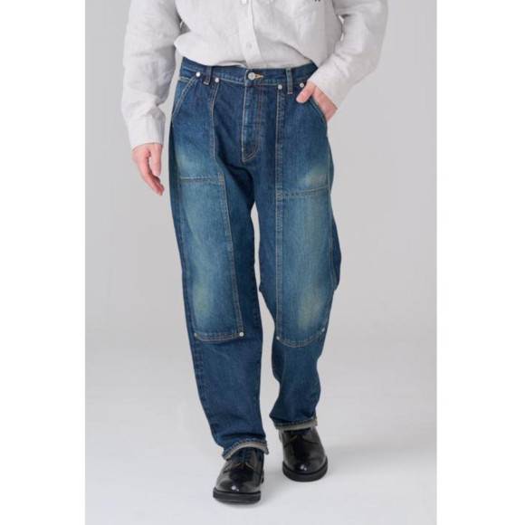 セルヴィッチデニムを使用したダブルニーパンツ。