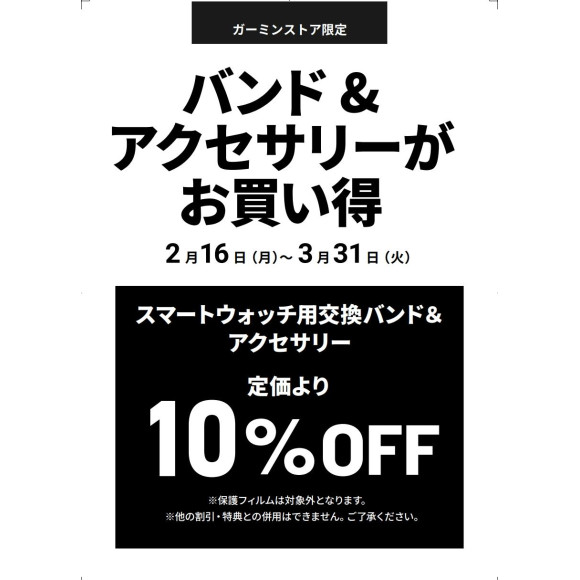 スマートウォッチ用交換バンド&アクセサリー定価より10%OFF ※保護フィルムは対象外となります。 ※他の割引・特典との併用はできません。ご了承ください。