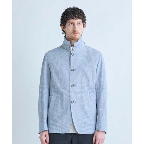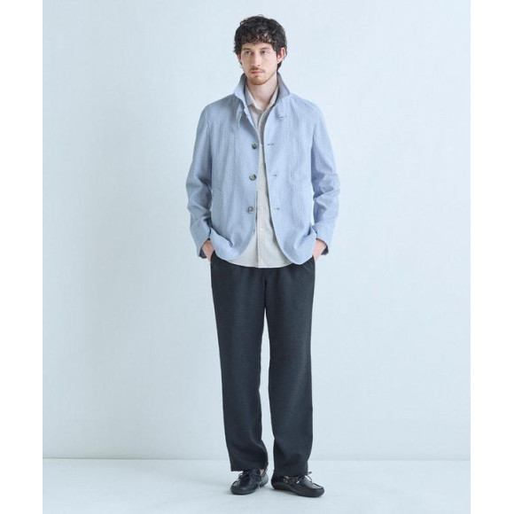 スタンドカラーとの相乗効果で、カジュアルながらも端正な印象に仕上げています。