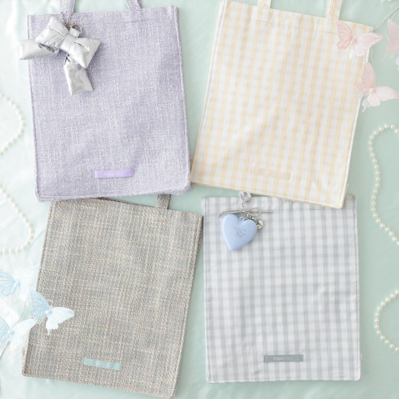 本日ご紹介するのは、オーガンジーやツイード、ギンガムチェックなど春らしい生地とカラーを使用したトートバッグです!!