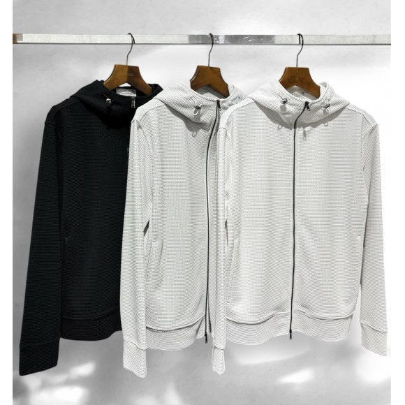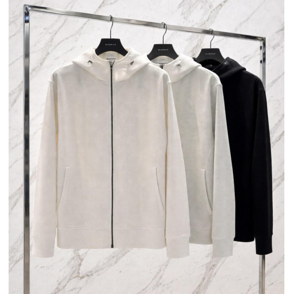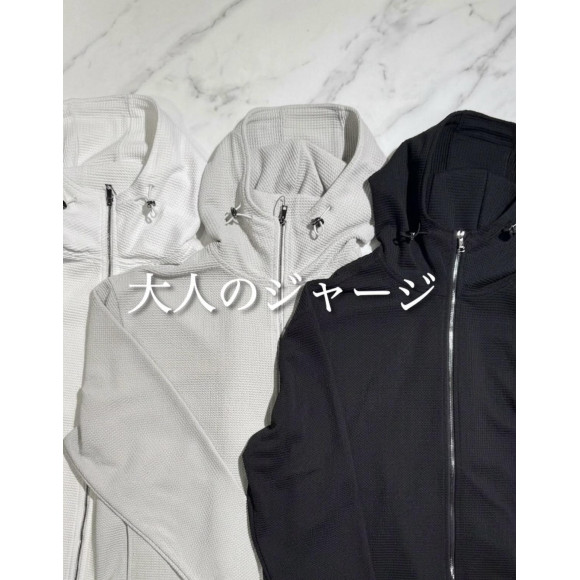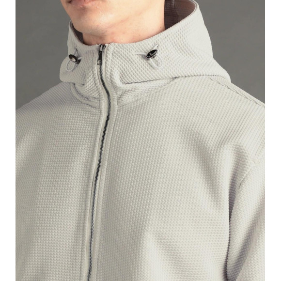 存在感のあるエレガントなジップアップフーディ。
