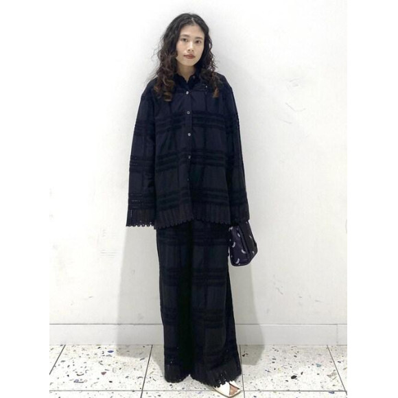 エンブロイダリーシリーズのご紹介です。 セットアップで着用してみました。 セットアップはコーディネートを考えずにお洒落に着用出来るのでオススメです◎ 軽い生地で風通しも良く、ご自宅で洗えるのでこれからの季節にぴったりです。 レースも細かく甘過ぎないので、レースに抵抗のある方でも挑戦しやすいシリーズです!