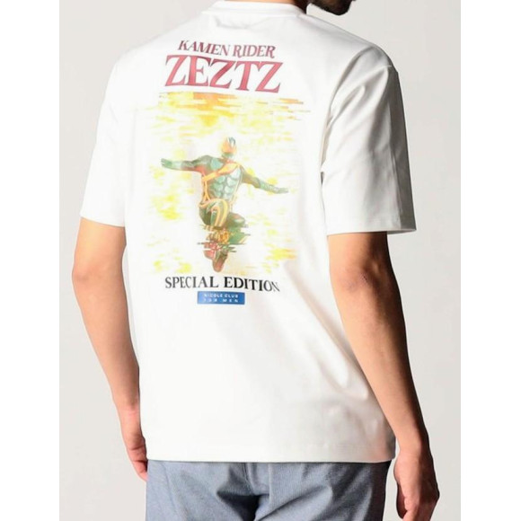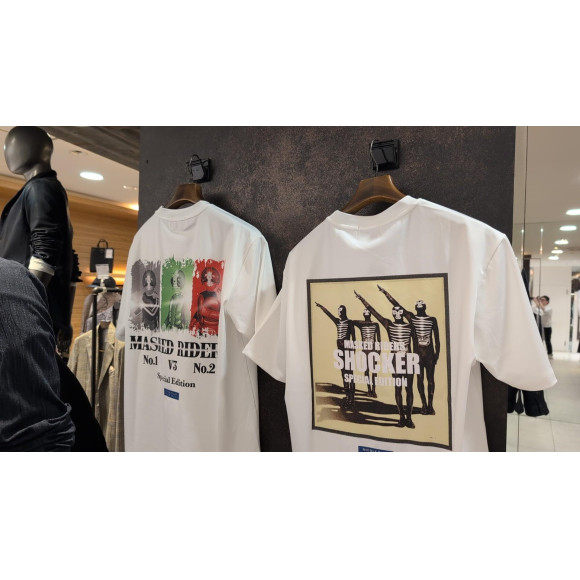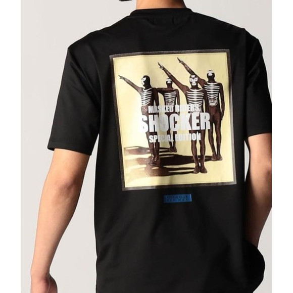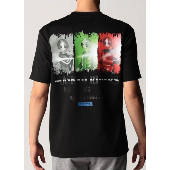 仮面ライダー(石森プロ・東映)とのコラボTシャツ企画第2弾。スタイリッシュなデザインロゴを厚盛りラバー、メタルジェルで表現しています。