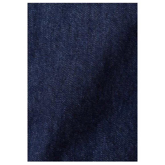 フロントファスナーにはレザーテープを使用し、デニムのカジュアルさにさりげないアクセントをプラス。